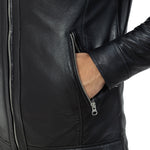 Men’s Black Leather Cafe Racer Jacket - Slim Fit Stylish Rider Zipper Jacket for Men - Genuine Lambskin Leather - Logan