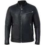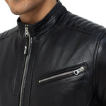 Men’s Black Leather Cafe Racer Jacket - Black Lambskin Leather